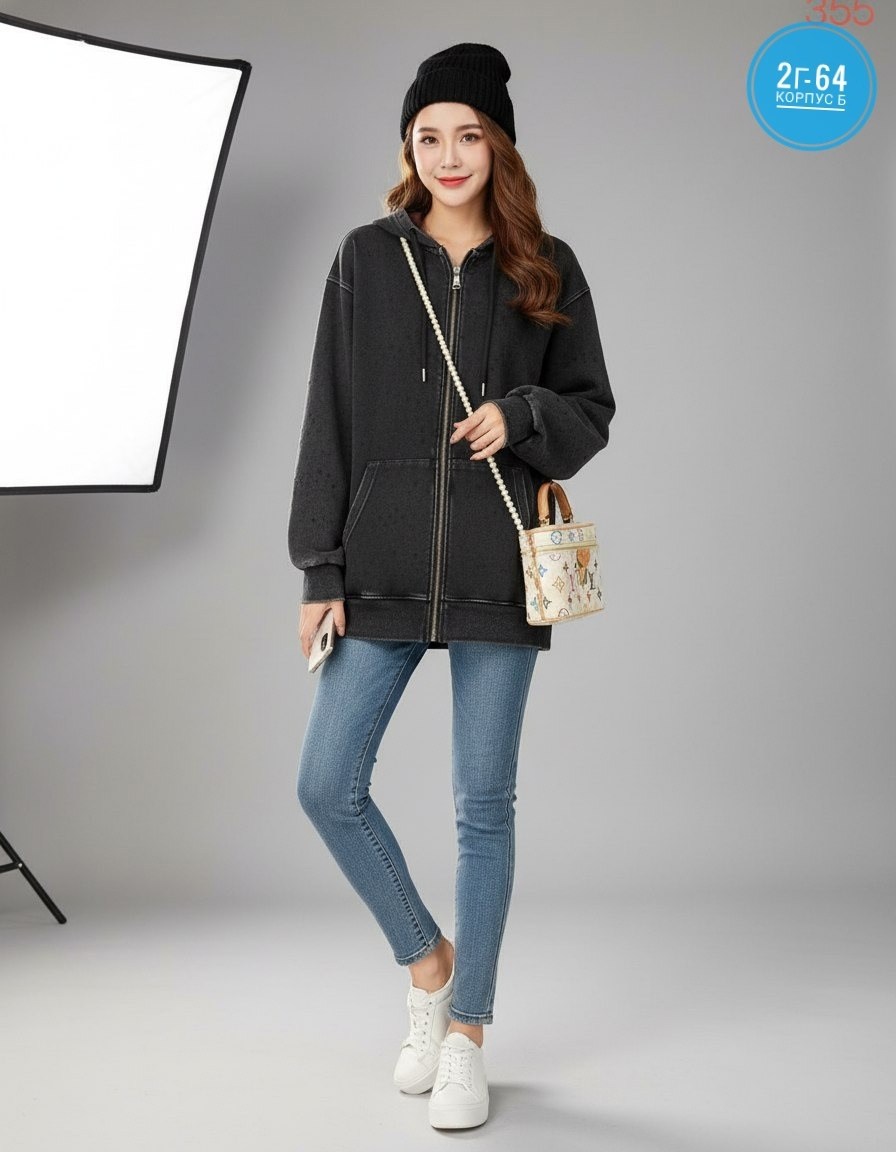 Эта толстовка легко сочетается с джинсами, леггинсами или спортивными брюками создавая стильный и практичный образ.