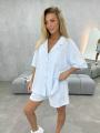 Спорт костюм летний состоит из шорт и лгкой блузы-рубашки из хлопка Рубашка свободного кроя с коротким рукавом подходит для повседневной носки.