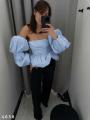 Хлопковый топ с резинкой на спинке и съемными рукавами (отстегиваются) Длина 41см по спинке / пог 33см Арт 4638.