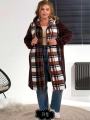 Женская кардиган в клетку с карманами.