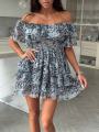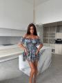 Окунитесь в атмосферу летнего беззаботного отдыха с этим мини-платьем Принт дарит образу свежесть и легкость Платье с открытыми плечами подчеркивает изящность шеи и ключиц Ярусные оборки создают эффект легкости и воздушности Эластичная сборка на груди и талии обеспечивает идеальную посадку по фигуре Изготовленное из легкой и дышащей тканьи, это платье станет вашим незаменимым нарядом для летних прогулок и вечеринок.