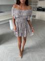 Окунитесь в атмосферу летнего беззаботного отдыха с этим мини-платьем Принт дарит образу свежесть и легкость Платье с открытыми плечами подчеркивает изящность шеи и ключиц Ярусные оборки создают эффект легкости и воздушности Эластичная сборка на груди и талии обеспечивает идеальную посадку по фигуре Изготовленное из легкой и дышащей тканьи, это платье станет вашим незаменимым нарядом для летних прогулок и вечеринок.