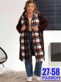 Женская кардиган в клетку с карманами.