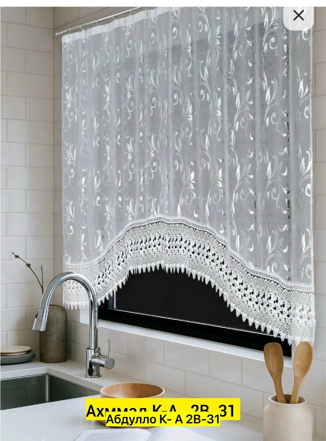 Тюль для кухни под лeн с серым арка
