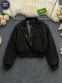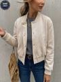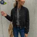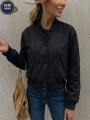 Однотонная женская куртка-бомбер с длинным рукавом, модным дизайном, элегантная, с манжеты базовая модель.