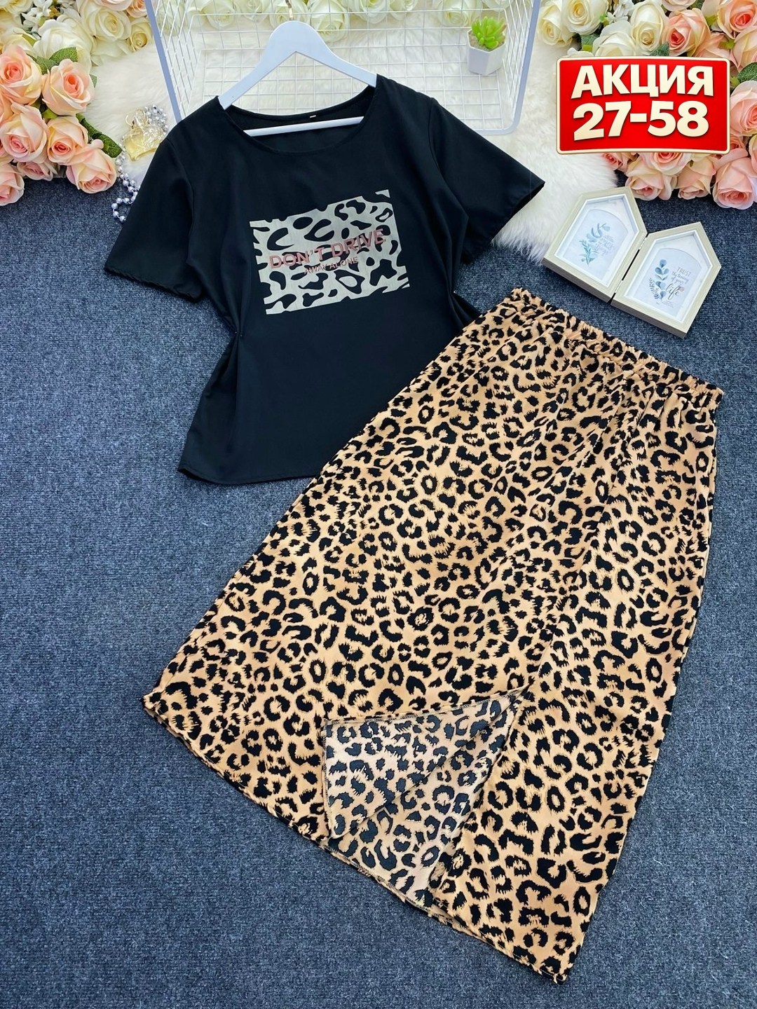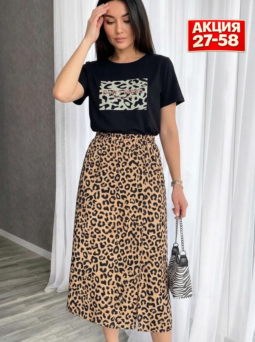 Юбка выполнена из юпонского прада и футболка с бенгалин и качественный принт выбрана самая трендовая леопардовая расцветка, которые сейчас на пике популярности.