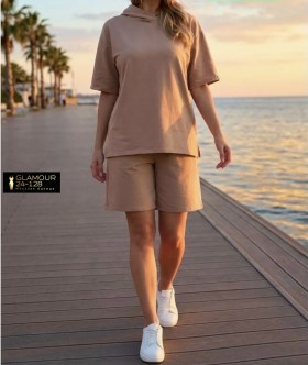 Костюм с капюшоном и шортами хлопок