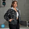 Новинка сезона джинсовая куртка с принтомкапюшон отстегиваться.