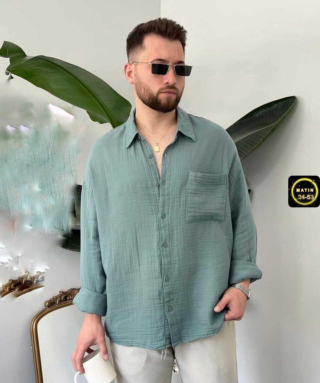 Супер распродажа мужской рубашка ткань муслимразмер 48-50 52-54 старая цена 700₽новая цена 400₽без выбора цвета.