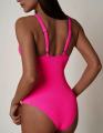 Слитный купальникс прозрачными вставками.