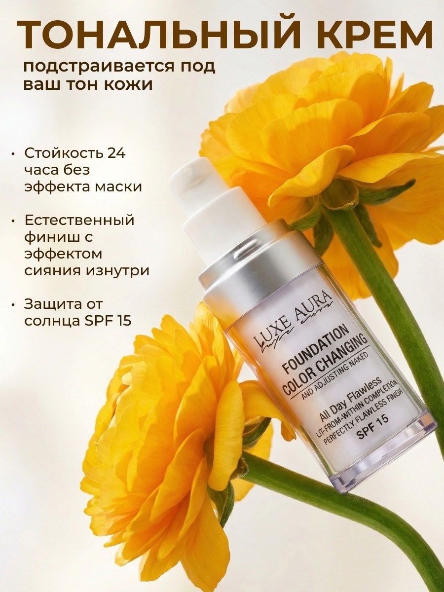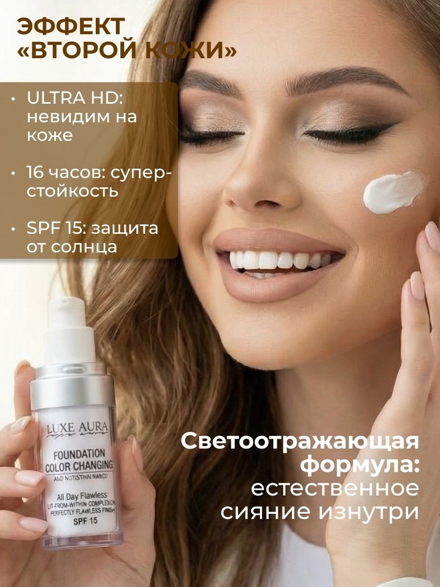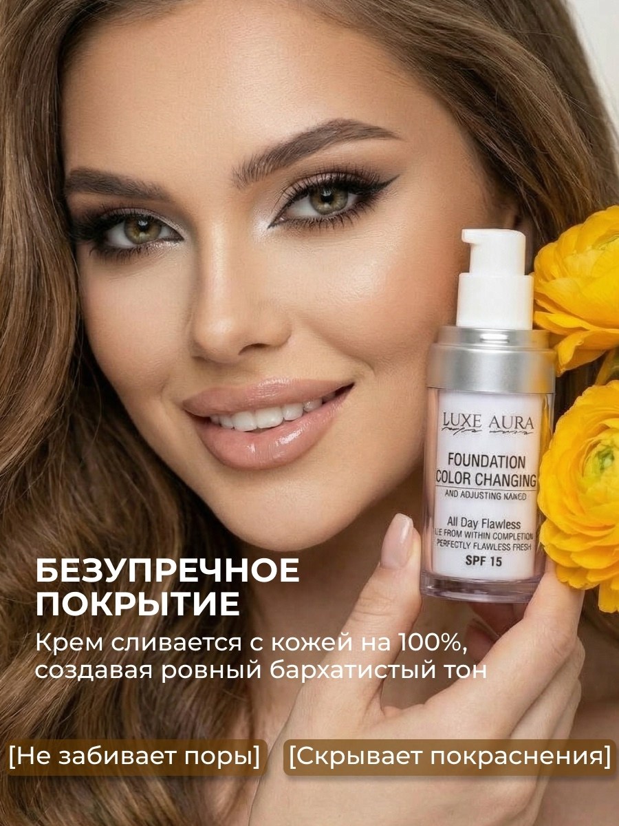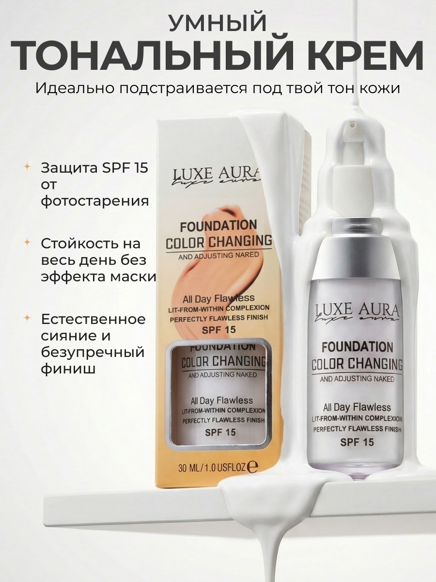 Инновационный тональный крем luxe aura, который меняет цвет прям на вашей коже и подстраивается под абсолютно любой е оттенок!.