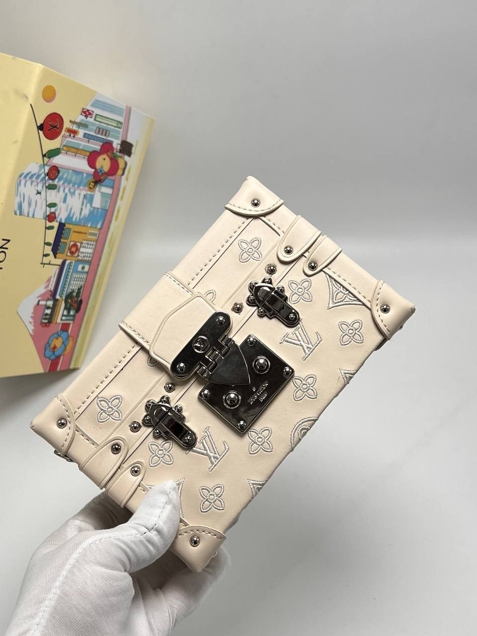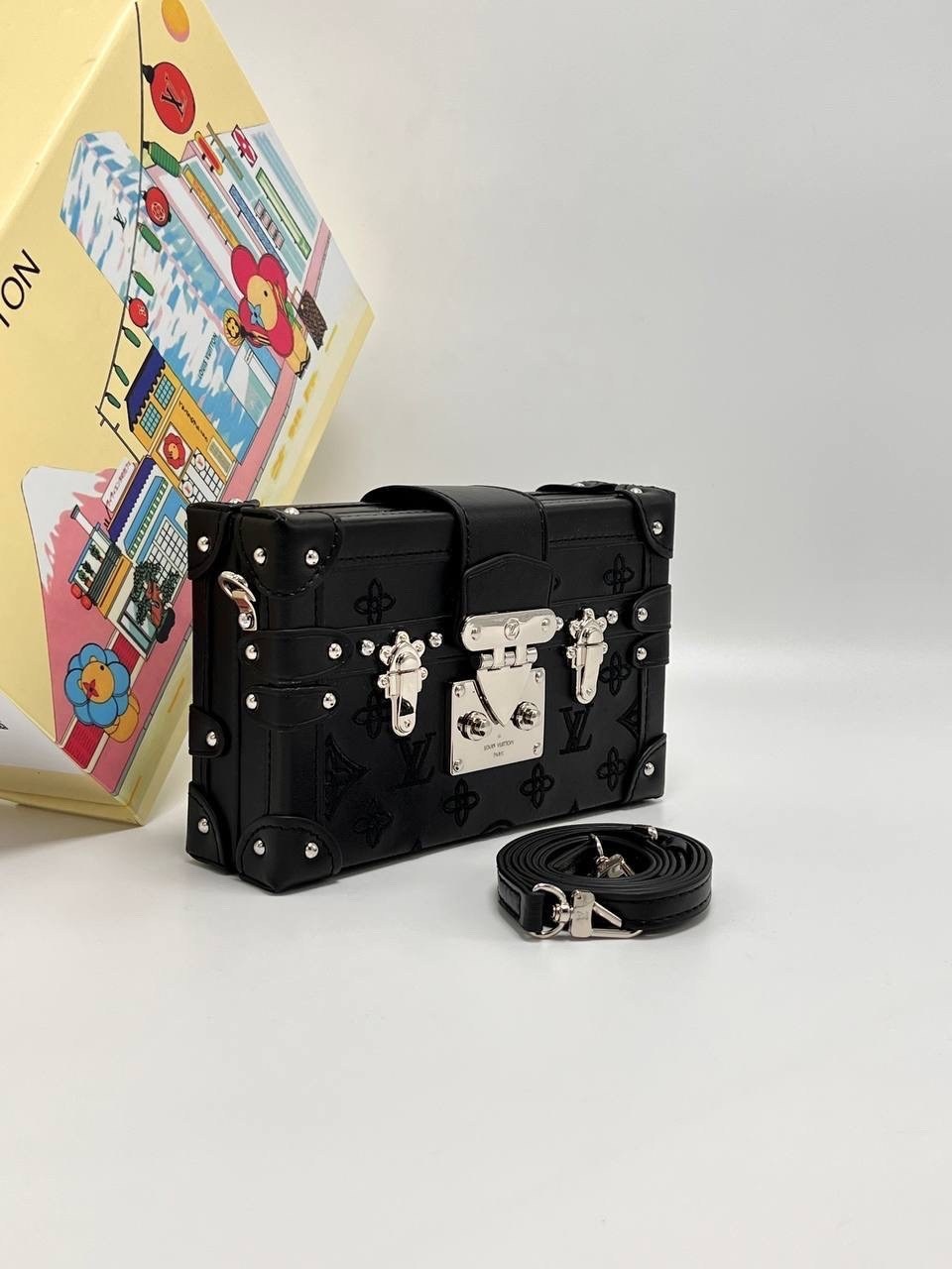 В комплект фирменный и пыльник двойная коробка.