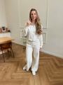 Удобный и модный костюм-двойка кофта с капюшоном на молнии, брюки-палаццо с эластичной талией для максимального комфорта и функциональные карманы.