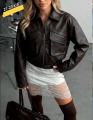 Дизайн: оверсайз крой со спущенной линией плеча, застежка на молнии и два объемных кармана с клапанами.