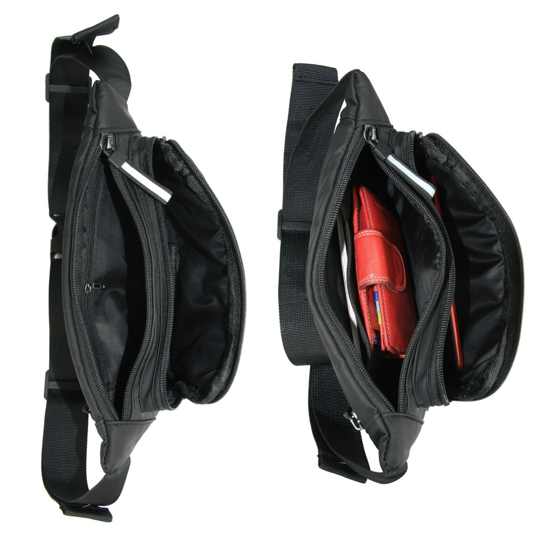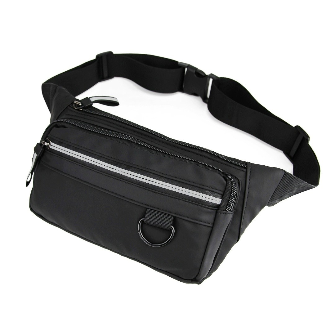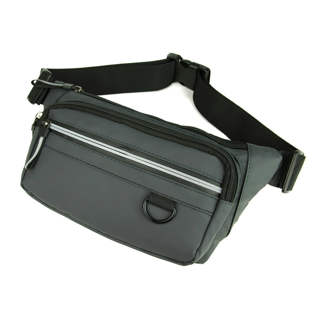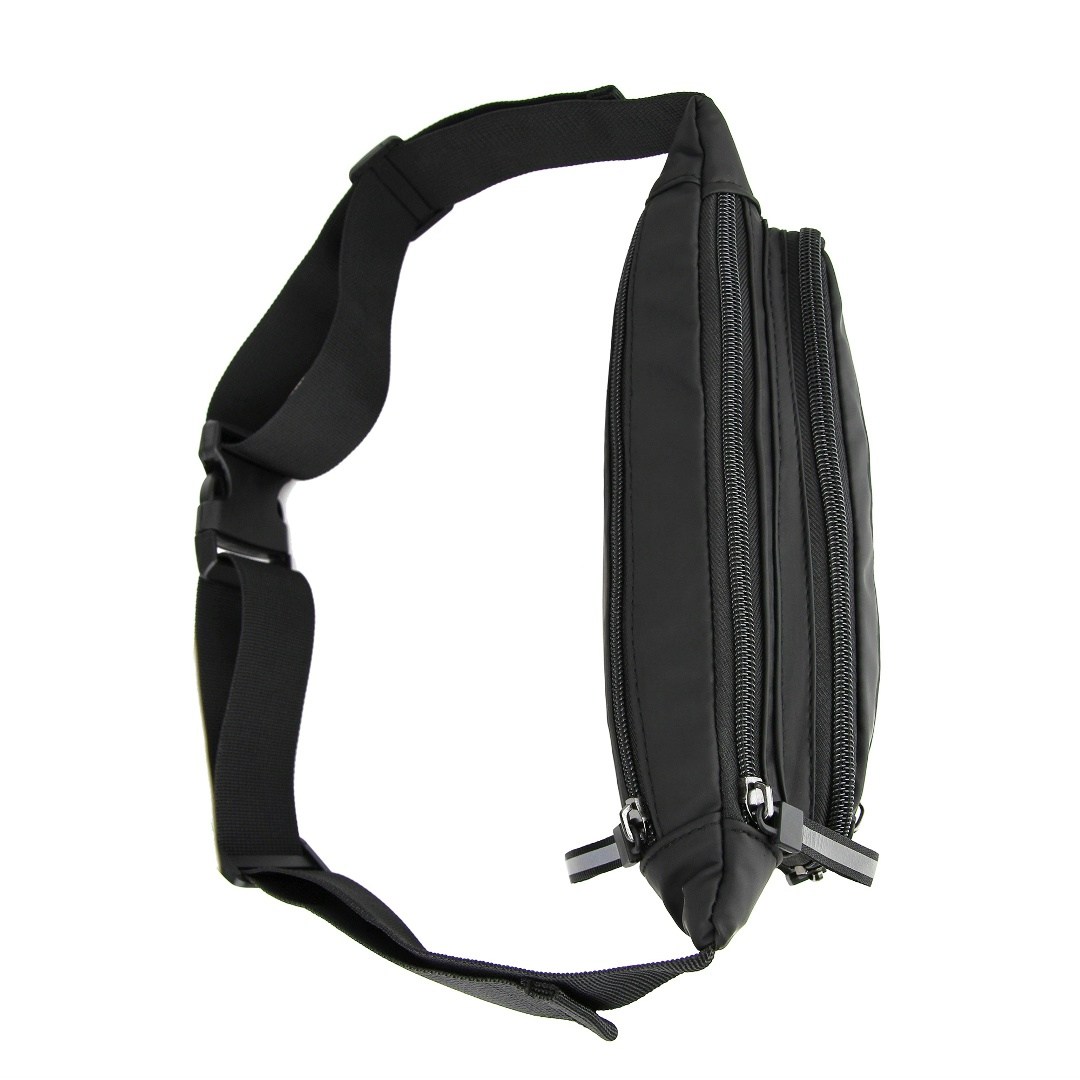 Поясная сумка изготовлена из влагостойкого оксфорда и прочных синтетических материалов Молния и поводки со светоотражателями Ремень регулируется по объму талии, максимальный обхват: 120 см Внешние карманы: 3 на молнии Во внутреннем отсеке (на молнии) есть 1 карман на молнии В сумку помещаются паспорт, кошелек, смартфон, ключи и другие предметы.