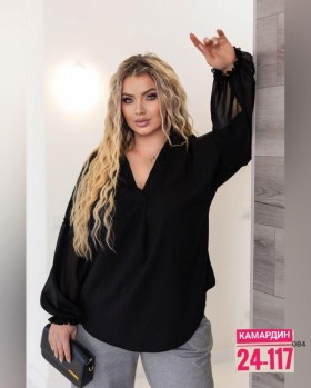 Блузка невероятно мягкого, которое обладает универсальной посадкой и органично смотрится на всех типах фигур.