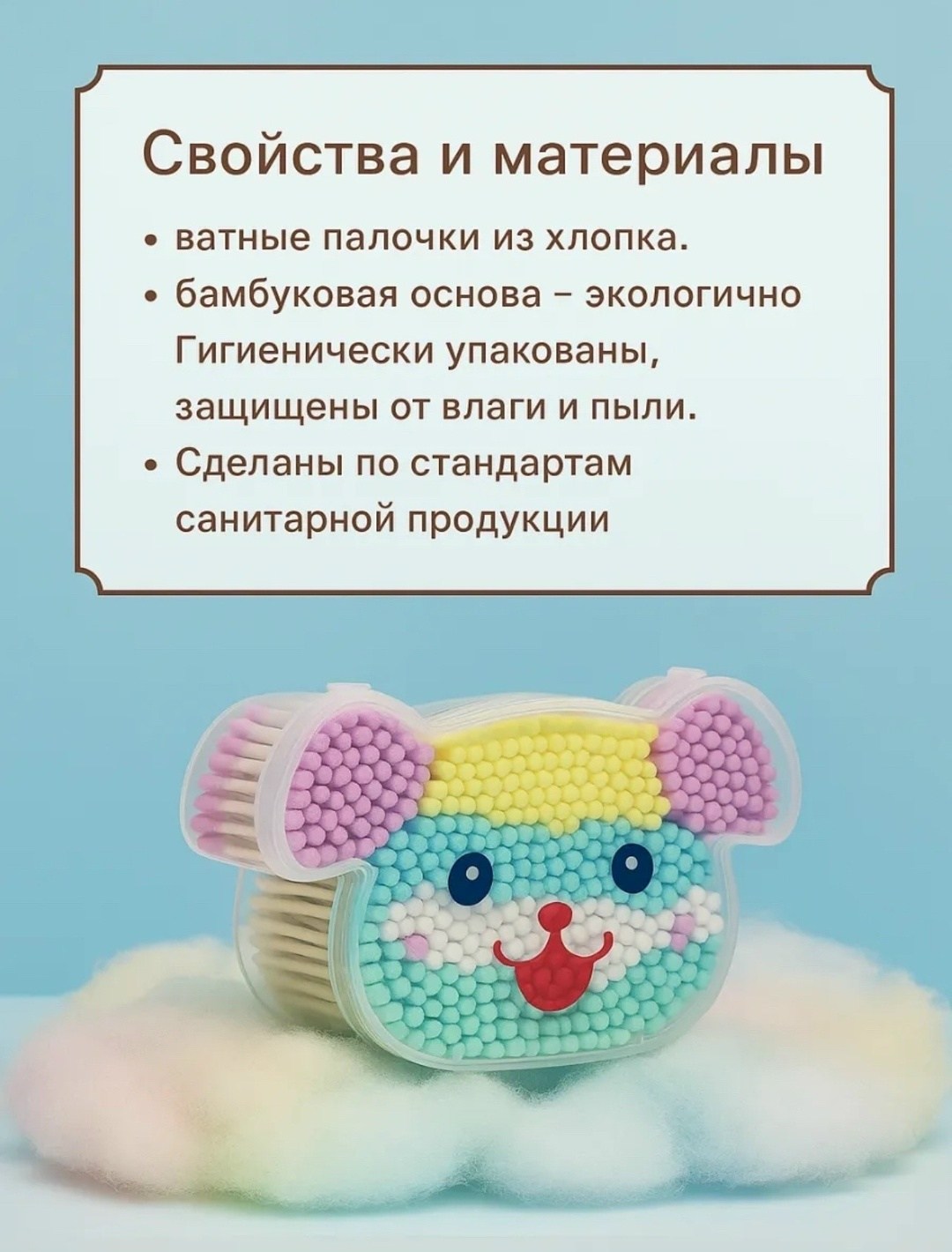 Милые, эстетичные и практичные хлопковые аксессуары с бамбуковой основой станут незаменимой мелочью в доме, на даче, в офисе, в машине и даже в сумочке Эти детские и безопасные изделия экологичные, гигиенично упакованы и подходят для всей семьи: для мужчин и женщин, для девочек, девушек, парней и даже для школьников Благодаря мягкой текстуре они не раздражают кожу и подходят для новорожднных, а также используются для интимной гигиены Сфера применения максимально широка Их удобно использовать для ухода за кожей и лицом, нанесения крема, мази, гелей и антисептиков Эти мини штучки подойдут для обработки ран, чистки ушей, удаления туши или коррекции макияжа, а также для чистки электроники и других мелких деталей Цветные варианты отлично смотрятся в косметичке, а компактная упаковка с веслым дизайном в форме мордочки понравится детям и добавит уюта Это не только полезные вещи и мелочи для повседневной жизни, но и прекрасная идея для подарка Палочки станут стильным дополнением к подарочному боксу на любой праздник: новый год, рождество, день рождения, 8 марта, 23 февраля, 14 февраля, день учителя или просто так как знак заботы Для дома из китая часто находят универсальные товары, и этот вариант один из самых удачных Экологичные, одноразовые, безопасные и удобные, они помогают в быту и в уходе за собой Красивые, прикольные и классные станут настоящим маст-хэв в косметичке, в сумочке или в наборе полезных вещей для дома.