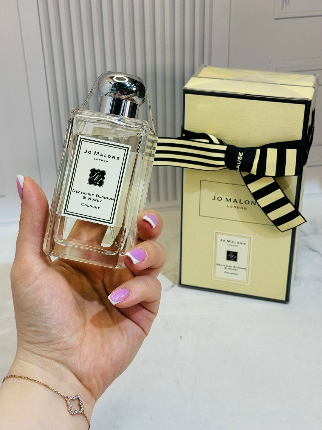 Парфюмерная композиция jo malone nectarine blossom honey состоит из нот черной смородины, клементина, кедра, нектарина, меда акации, персика, ветивера и сливы.