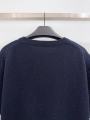 Свитер не имеет застжек и оснащн круглой горловиной, рукавами длиной до локтя Рукава и подол с эластичными манжетами На переднем полотне название марки и логотип Тмно-синий оттенок является нейтральным, поэтому проблем со стилизацией не возникнет Летом вещь можно носить самостоятельно, а в холодное время года включать в многослойные образы.