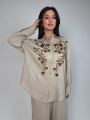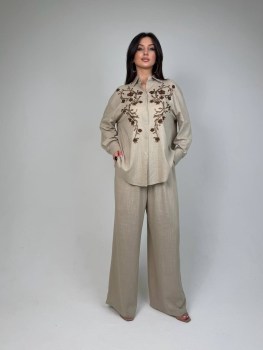 Костюм лен брючный с вышивкой на рубашке.