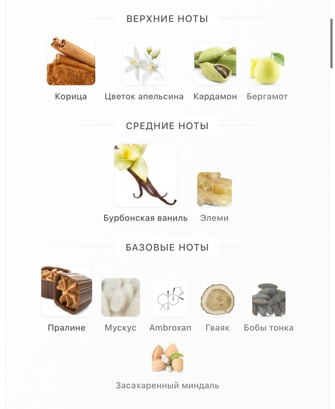 Средние ноты: ваниль, элеми