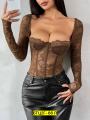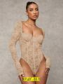 Кружевное боди с длинным рукавом