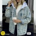 Джинсовая куртка с капюшоном очень хороший и удобные, капюшон отстегивается!.