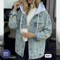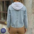 Джинсовая куртка с капюшоном очень хороший и удобные, капюшон отстегивается!.