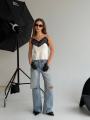 Трикотажный топ с кружевами