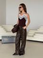 Трикотажный топ с кружевами