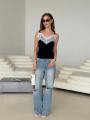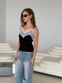 Трикотажный топ с кружевами