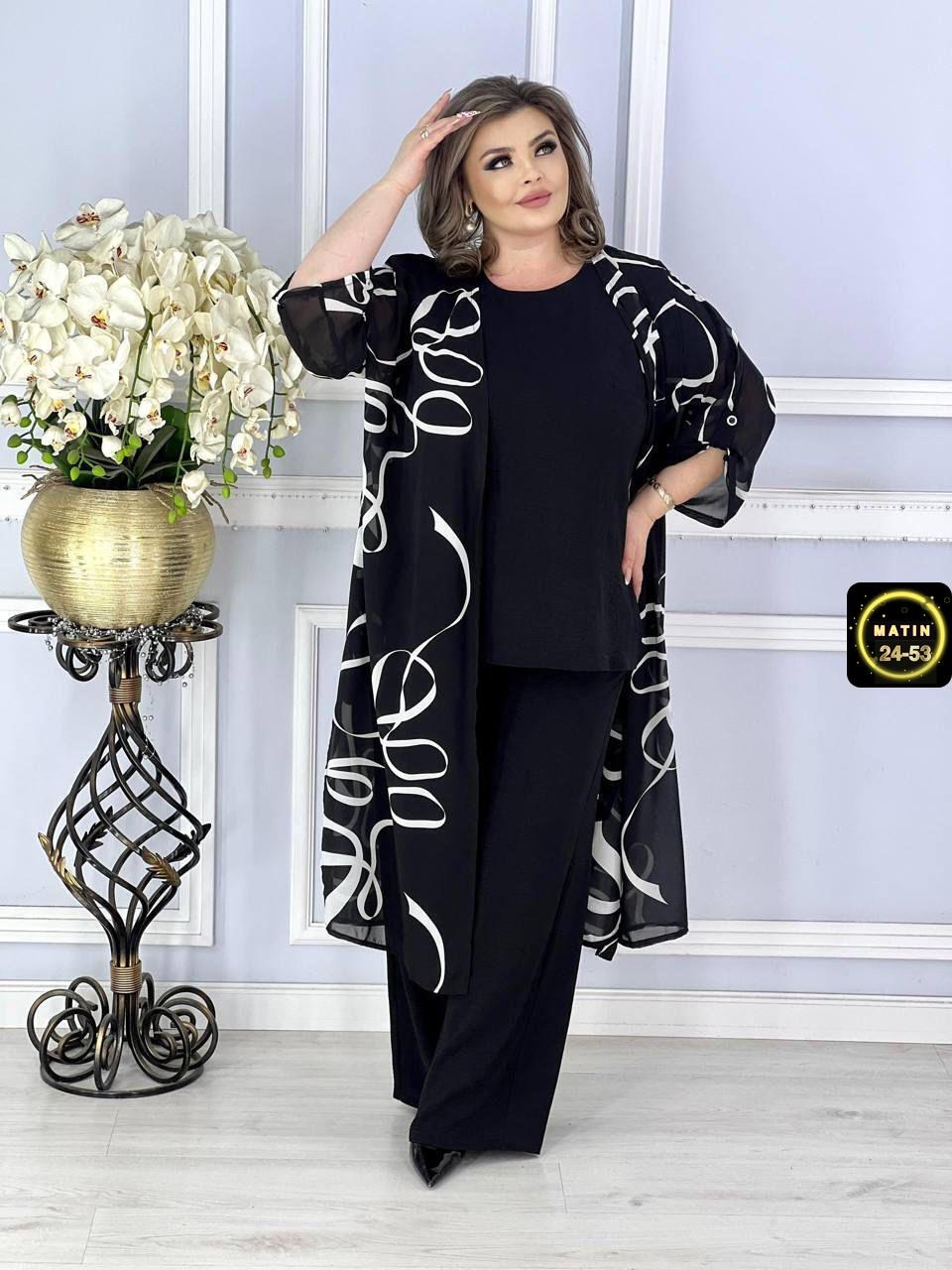 Хит продаж за 1400(₽)костюм тройка, шифонразмеры:60 62 64 66 68 70баталразмер полномерный ткань накидки: шифонткань костюм: сингапур длина кофта 70смдлина брюк 106смдлина накидка 132смцена: 1400(₽) рублей успейте приобрести.