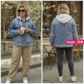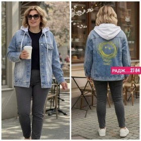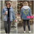 New collectionшикарный джинсовка с капюшономзади идут с рисунком размер (l52 54) (xl56 58) (2xl60 62)ткань джинсовкакопешон снимаетсяцена 900₽объм груди на l 114см.
