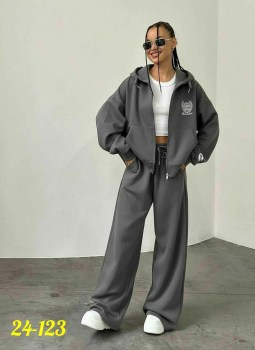 Уютный женский спортивный костюм свободного кроя из качественной тканьи-главный тренд сезона Его универсальные цвета легко впишутся в базовый гардероб, а удобный крой обеспечит идеальную посадку по фигуре Идт с кофтой на молнии и брюками палаццо на кулиске!.