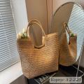 Женская модная полосатая летняя пляжная соломенная вязаная сумка на плечо, полые сумки ручной работы, портативная повседневная сумка большой вместительности.
