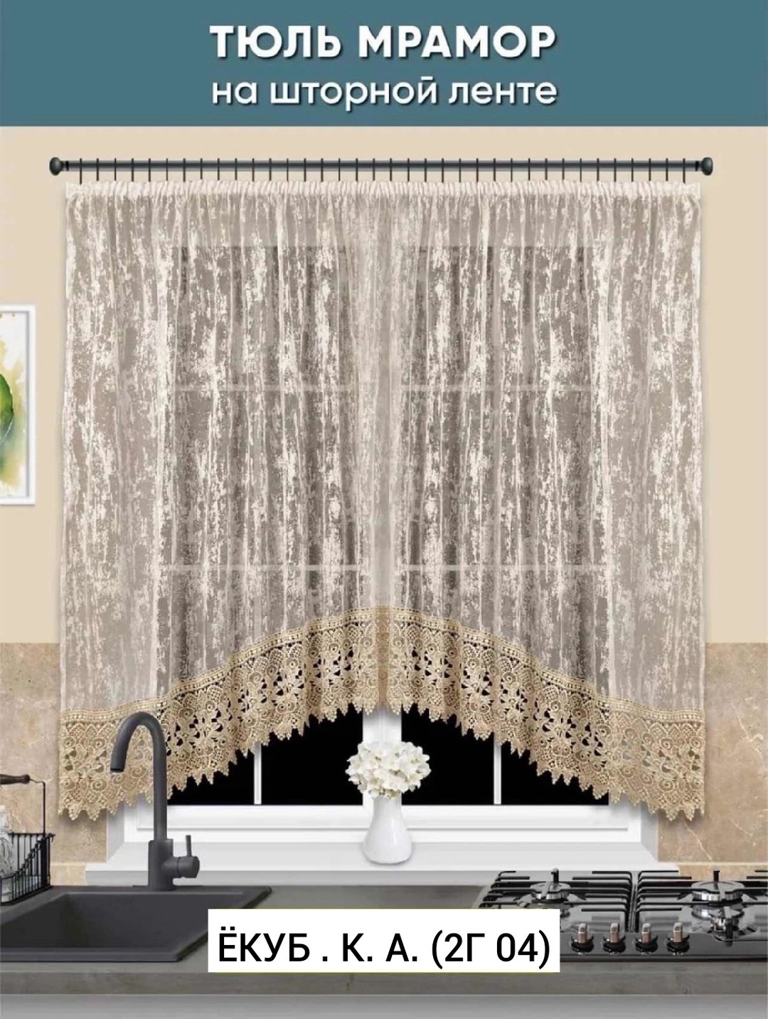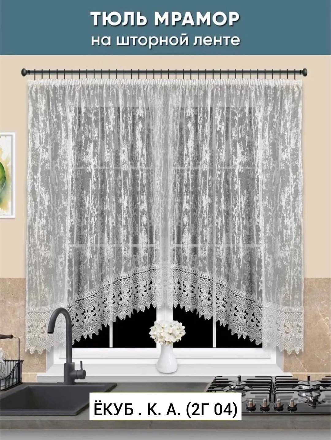 Тюль для кухни мрамор